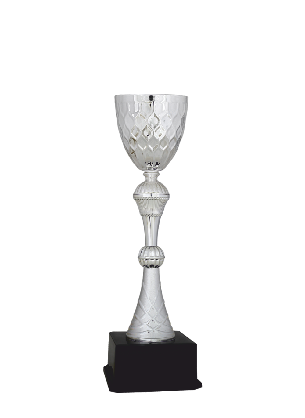Bu gümüş kupa; Gümüş renk paslanmaz metal çanak, Gümüş renk özel tasarım 5 cm çapında logo alanı, Gümüş renk özel tasarım plastik kolon, Siyah sert plastik taban,