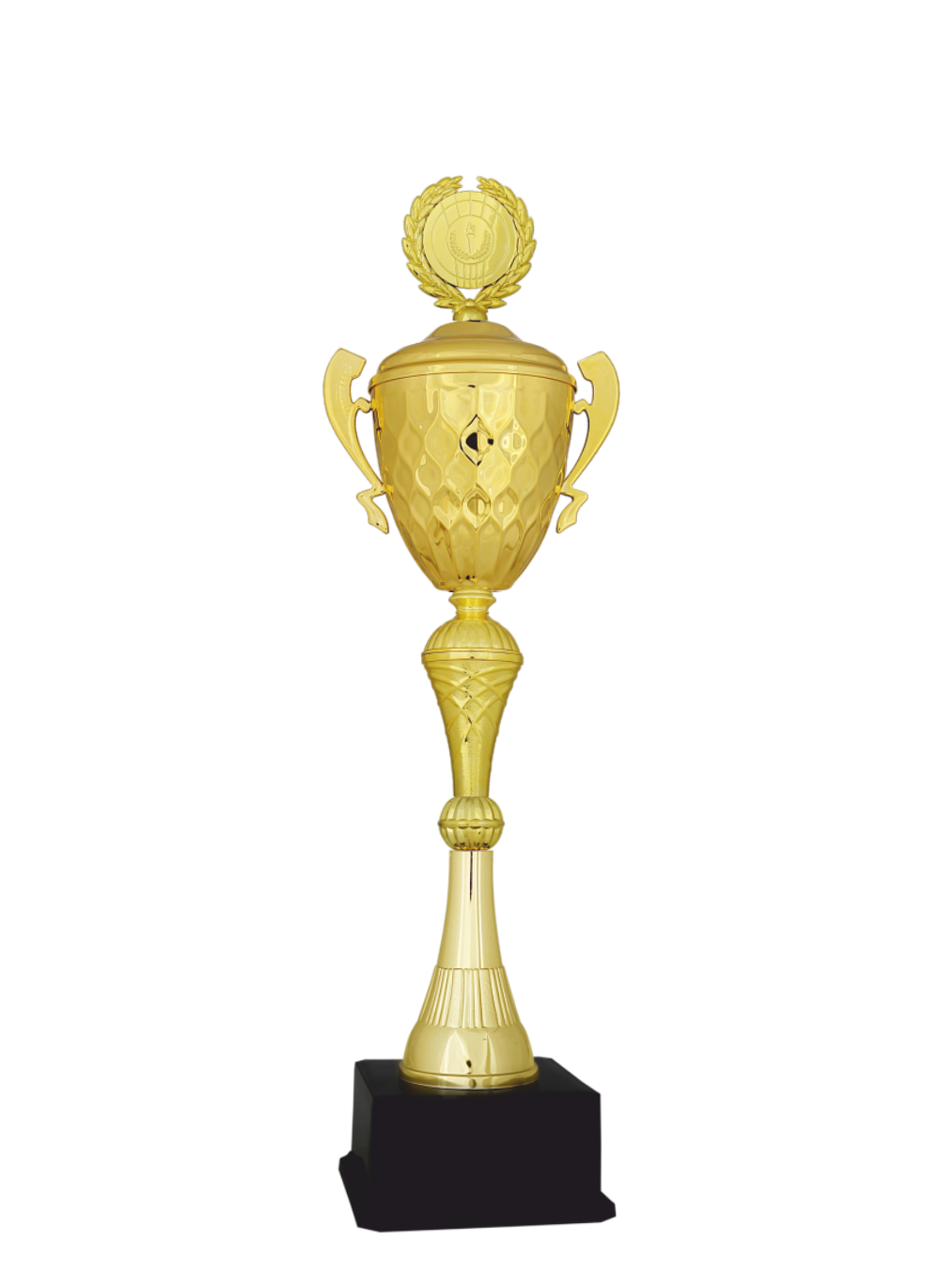 Bu kulplu altın kupa; Altın renk paslanmaz metal çanak, Altın renk metal kapak üzerine özel tasarımlı 5 cm logo alanı, Altın renk özel tasarım plastik kolon, Siyah sert plastik taban,
